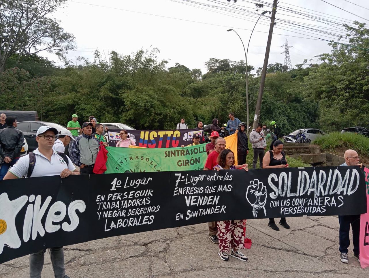 Varios sindicatos y organizaciones realizan plantón y bloqueo en las instalaciones de Huevos Kikes en #Bucaramanga, para manifestar su solidaridad con la compañera Claudia Gamboa,